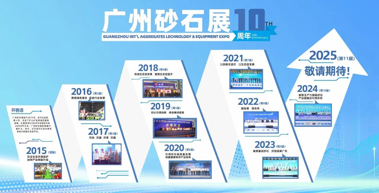 自2015年起,广州国际砂石技术与设备展已成功举办十届,成为砂石骨料领域内的权威展示与交流平台。此次同期办展,将进一步彰显跨界合作的优势,为粤港澳大湾区砂石行业注入创新活力,推动产业链优化升级,共创美好未来。