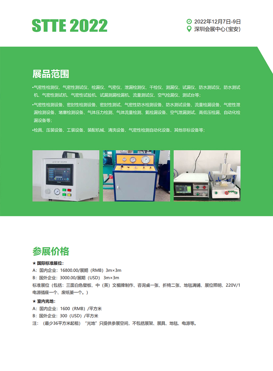 STTE 2022深圳(国际)气密性检测及检漏设备展览会