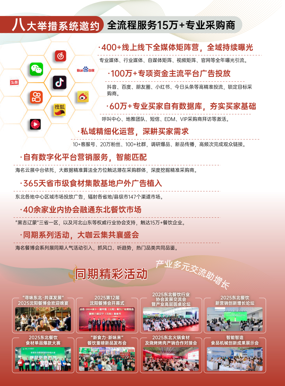 海名·2025年第12届沈阳火锅展将于2025.4.17-19日在沈阳国际展览中心盛大举办,是东北首场火锅食材规模大展,本届展会将在东北餐饮发展红利下全新起航,持续聚焦东北市场,深耕餐饮行业,通过举办20余场行业活动、精准对接6大核心观众类型、运用8大核心举措,触达150000人次观众到会参观,秉承“高效招商 成效成交”理念,已成为引领“黑吉辽蒙”三省一区餐饮行业发展的新动能。