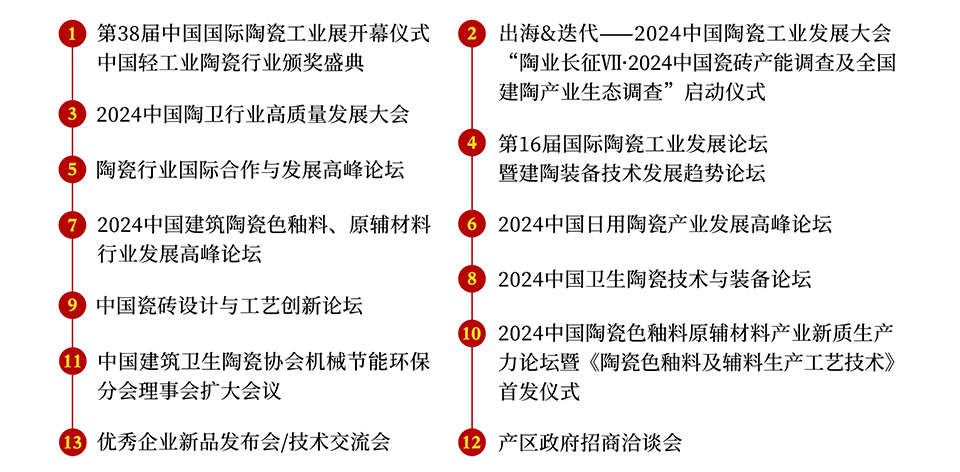为推动行业进步,助力陶瓷行业高质量发展,增强陶瓷行业的凝聚力和向心力,中国轻工业联合会、中国建筑材料联合会、中国建筑卫生陶瓷协会、中国陶瓷工业协会、中国国际贸易促进委员会建筑材料行业分会、广东新之联展览服务有限公司、北京建展科技发展有限公司等七家单位,决定自2024年起联合举办“中国国际陶瓷工业展”。