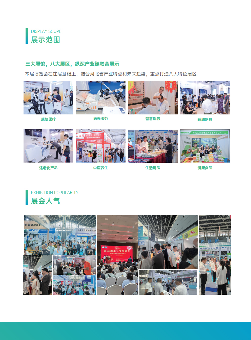 2026中国(河北)国际医养产业博览会将于2026年5月15至17日在石家庄国际会展中心举行,本届博览会与第33届河北(石家庄)国际医疗器械展览会同期举办,展览面积突破3万㎡,汇聚全国800+优质参展企业,30000+专业观众齐聚,国内外众多领先的医养康企业展示最新科研成果和产品,为观众提供了与行业领军企业直接交流的机会,进一步促进医养康产业结合发展。