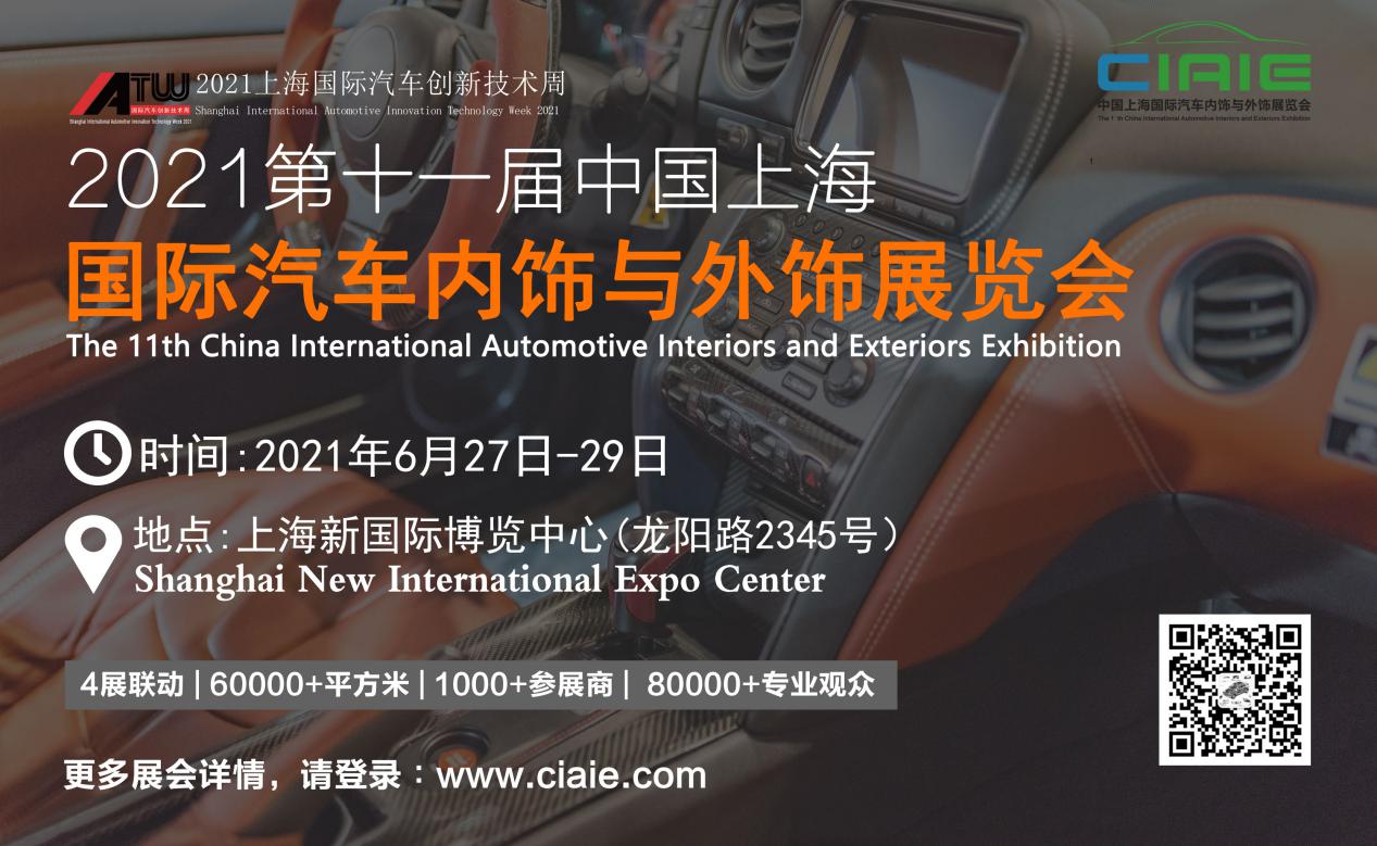 第十一届中国上海国际汽车内饰与外饰展览会将于2021年6月27-29日在上海举办,超过十年的成功经验和深入汽车技术、设计、制造、材料行业的探究,使CIAIE再次站上新的巅峰,迈上全新的征程!