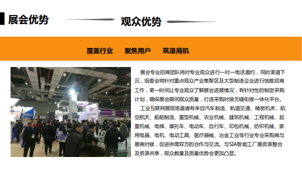 2020上海国际工业互联网及工业通讯展览会与2020第18届上海智能工厂展 (SIA)同期举办,是工业领域的行业例会,吸引了1300家展商,专业观众120,000人,展出面积130000平米, 每年固定在上海、广州轮流举办,已成功举办十六届。
