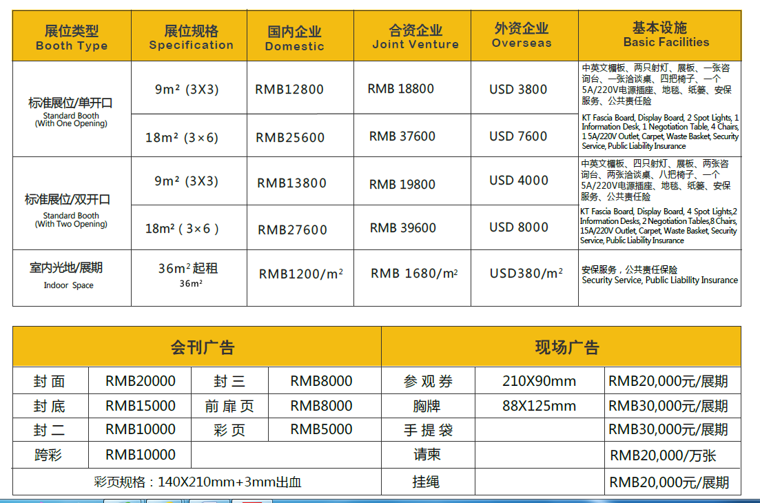 展位费用: