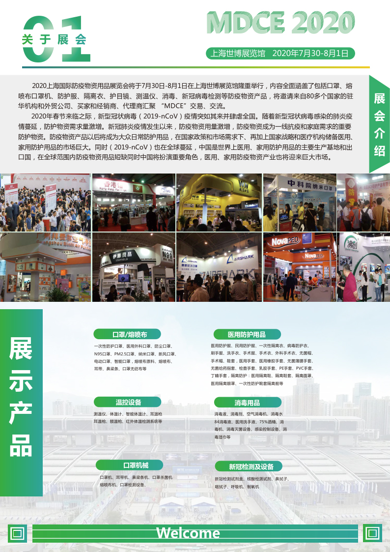 内容摘要: 2020上海国际防疫物资用品展览会 Shanghai International Epidemic Prevention Materials Supplies Exhibition 2020 2020.7.30-8.1 上海世博展览馆(上海市浦东新区国展路1099号) 2020上海国际防疫物资用品展览会……