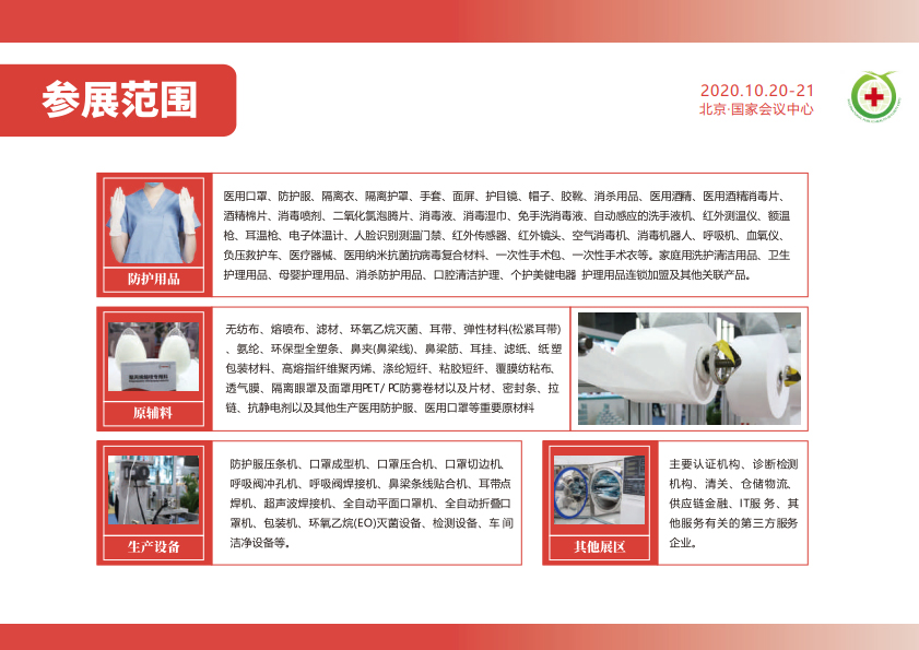 内容摘要: 2020北京国际公共卫⽣安全防控、防疫及防护物资交易会 International public health and safety prevention and control in 2020 Anti epidemic and protective materials (Beijing) Fair 2020.10.20-21 北京·国家会议中⼼ 重……