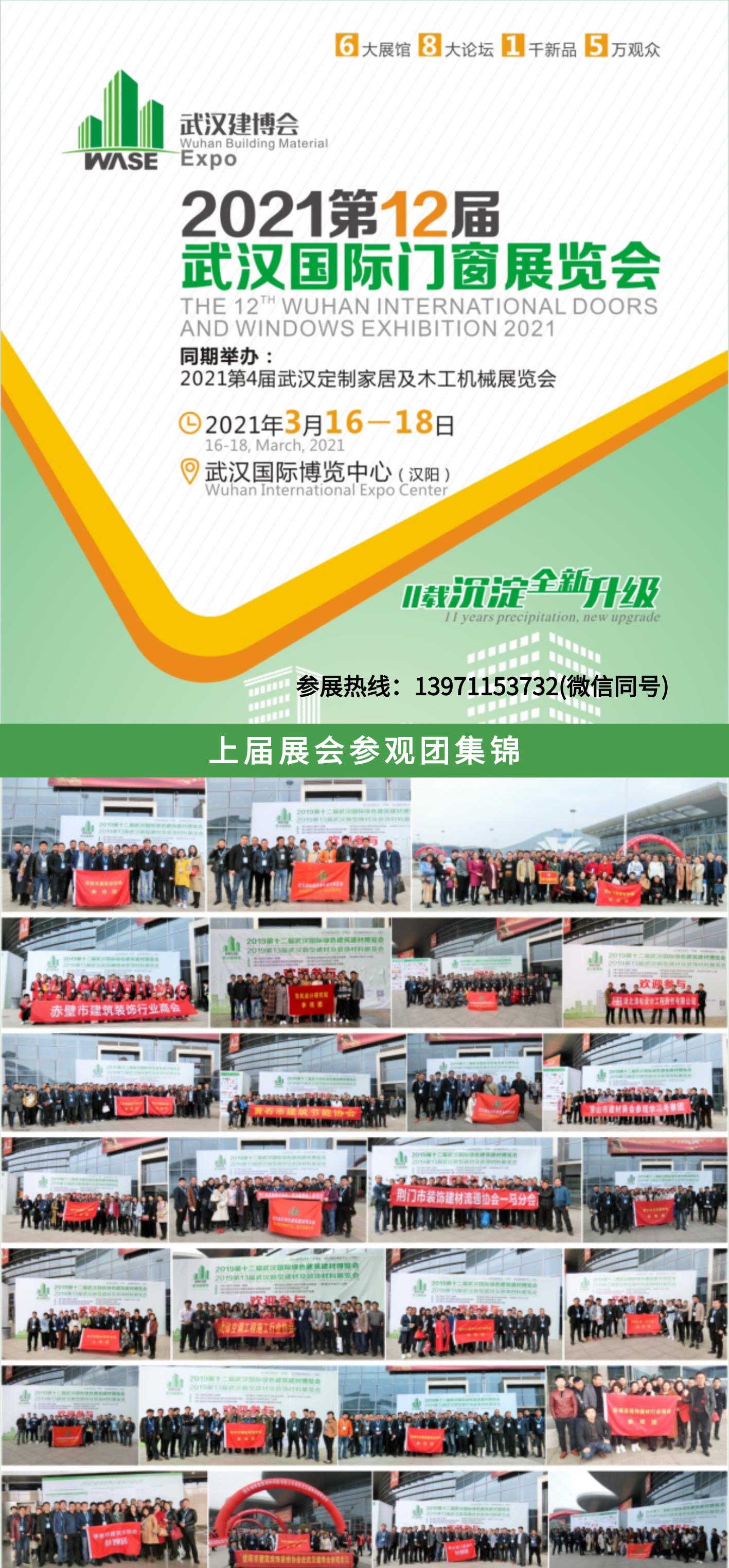 内容摘要: 11载沉淀 全新升级 6大展馆 8大论坛 1千展商 5万观众— 2021第12届湖北武汉国际门窗展览会 2021 The 12th Wuhan international doors and windows Exhibition 同期举办: 2021第13届湖北武汉建材新产品招商……