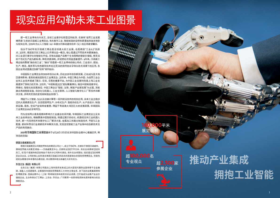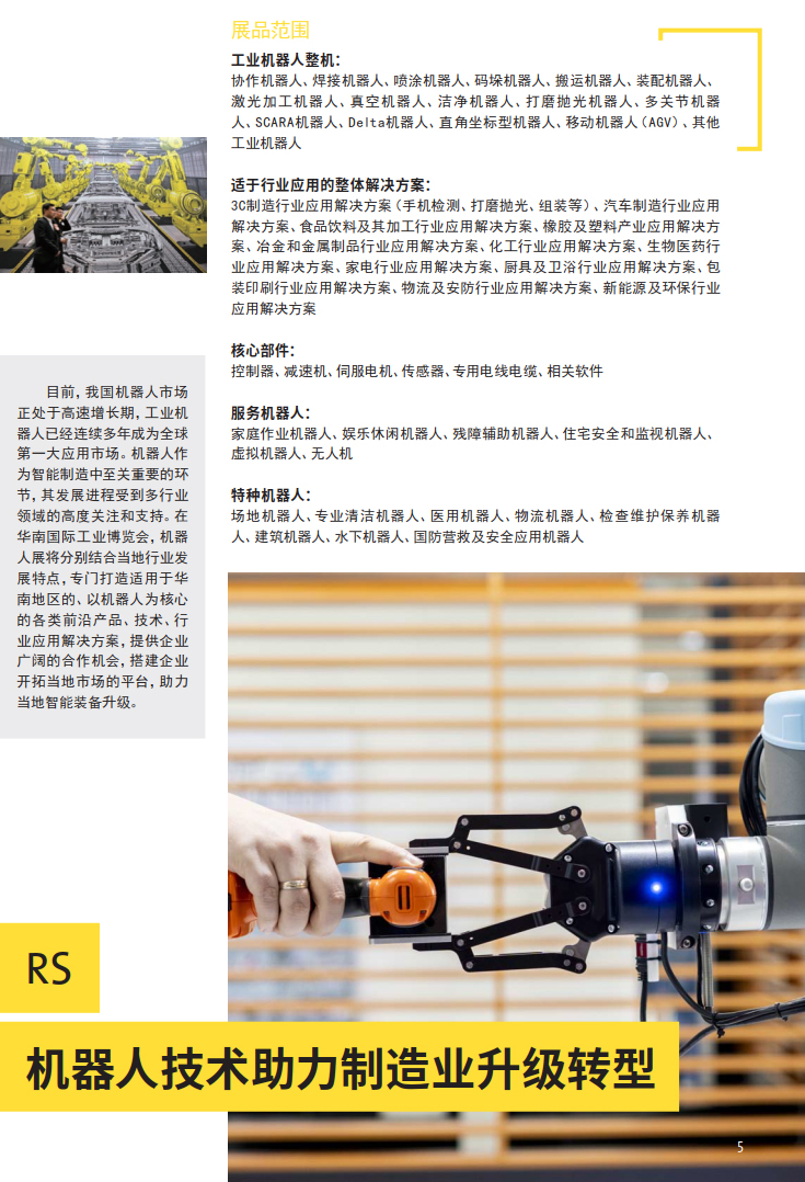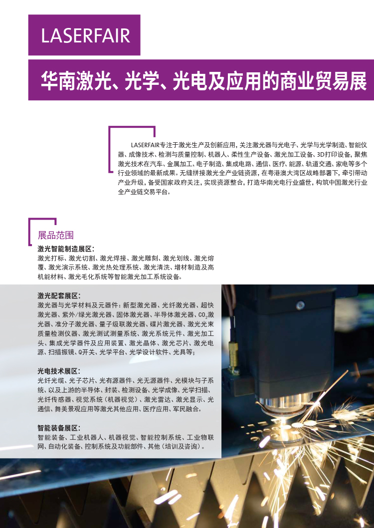 作为全球两大极具规模和影响力工业盛会的系列展,华南国际工业博览会立足未来工业的高站位,精确聚焦中国智能制造,将通过展示自动化、机器视觉和工业机器人技术、新一代信息技术和数字化工厂解决方案、金属加工和激光制造技术、节能与工业配套、新材料等全行业最新技术和解决方案,完美呈现智能工业产业链中的创新技术及产品的有效融合。