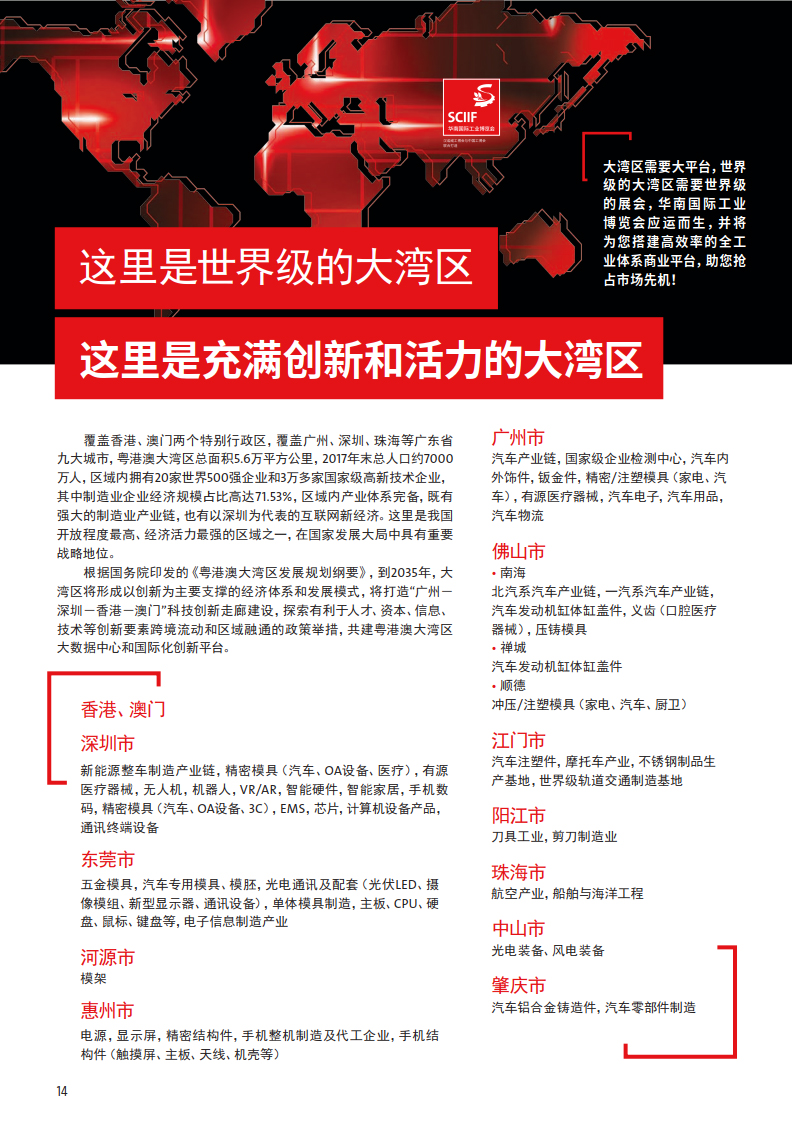 得益于人工智能、5G以及边缘计算等一系列前沿技术的现实应用,未来工业正稳步迈向大规模柔性生产、全流程透明生产、分布式生产、智能自动生产。从产品设计、制造到运输、服务,全球产业链将被重塑。得益于粤港澳大湾区巨大的发展前景,华南国际工业博览会由此孕育而生。