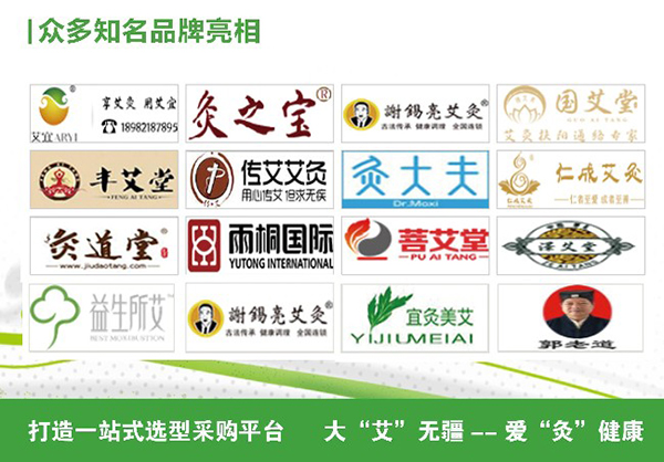 贝利凯、华绪艾绒厂、中皇野生艾、祥勤按摩、河南恒东、河南大唐艾神健康、九艾御堂、蕲春汉方、青岛迪麦斯、广州康都仪器、金贝妮迪电器、西安颐和堂健康、南阳宛北、南阳艾鑫艾草、嘉善医之爱、艾艾贴等企业。