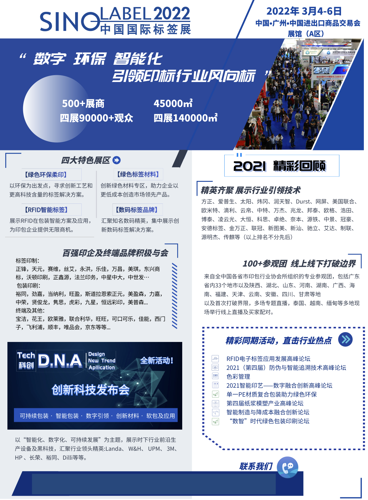 中国国际标签展(sino-label)立足华南市场,影响力,性辐射国,展出规模及观众质数连续多年稳步提升,获展商及观众一致认可;其设置、展示产品、贸易效果及展商服务均得业内认可,得海内外众多行业协会及买家团鼎力支持。