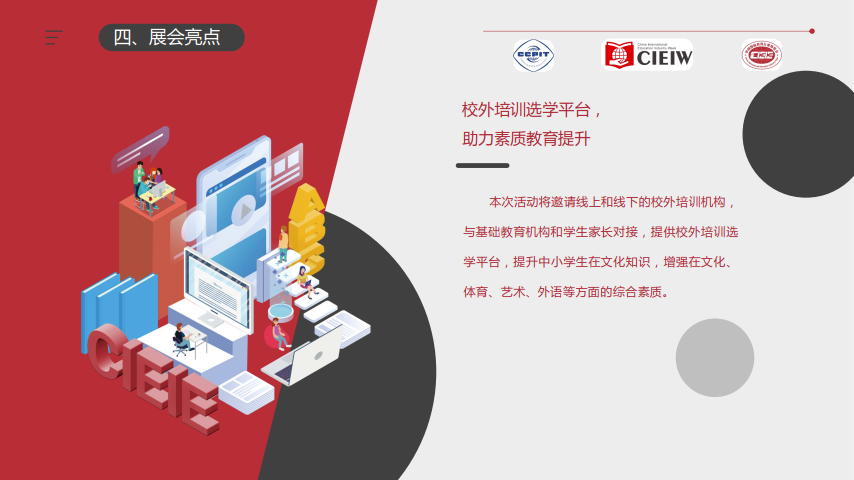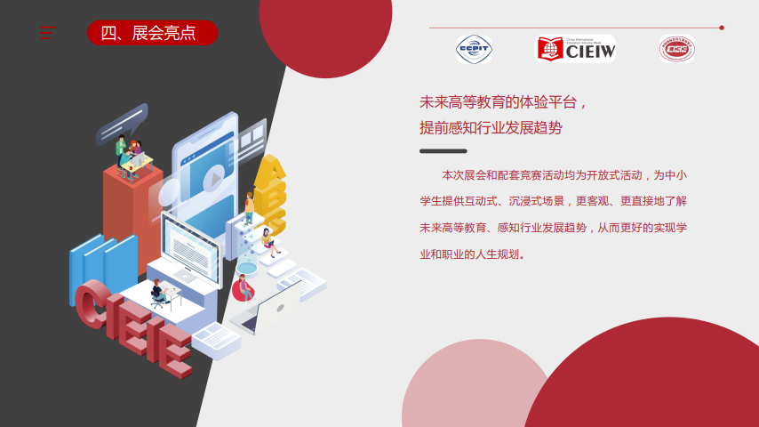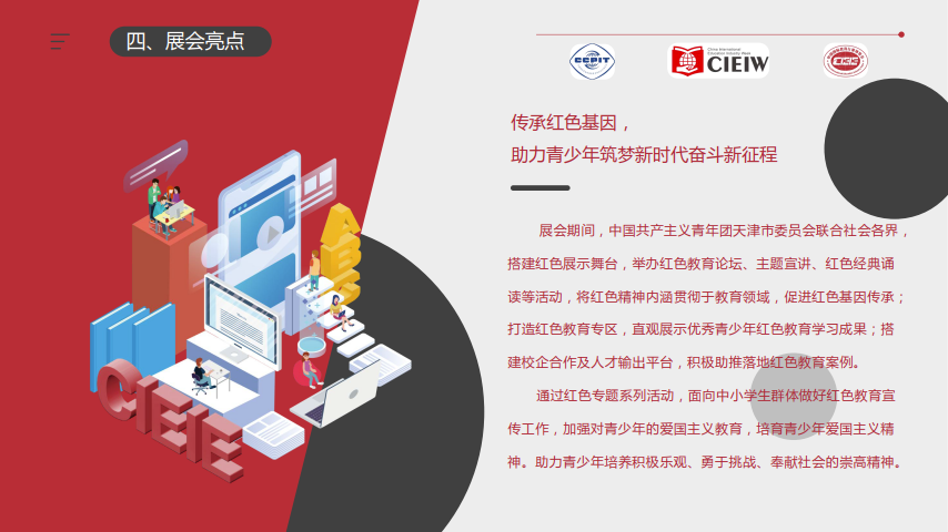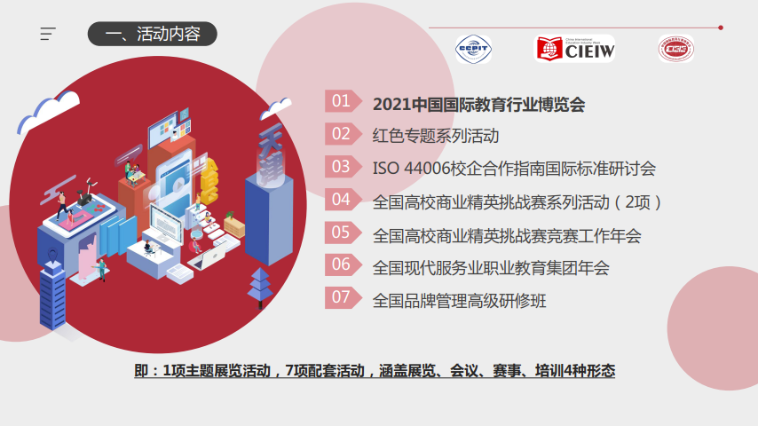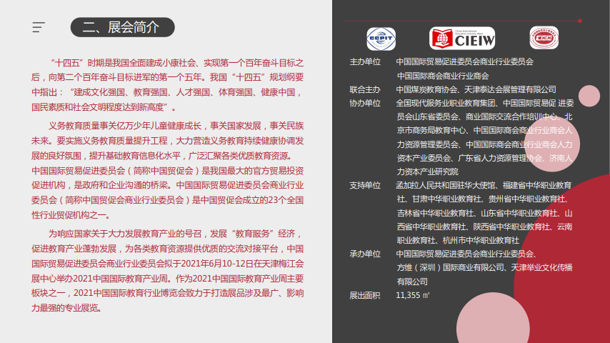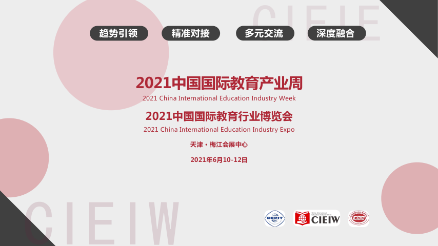 内容摘要: 2021中国国际教育产业周 2021 China International Education Industry Week 2021中国国际教育行业博览会 2021 China International Education Industry Expo 天津 · 梅江会展中心 2021年6月10-12日 2021中国国际教育行……