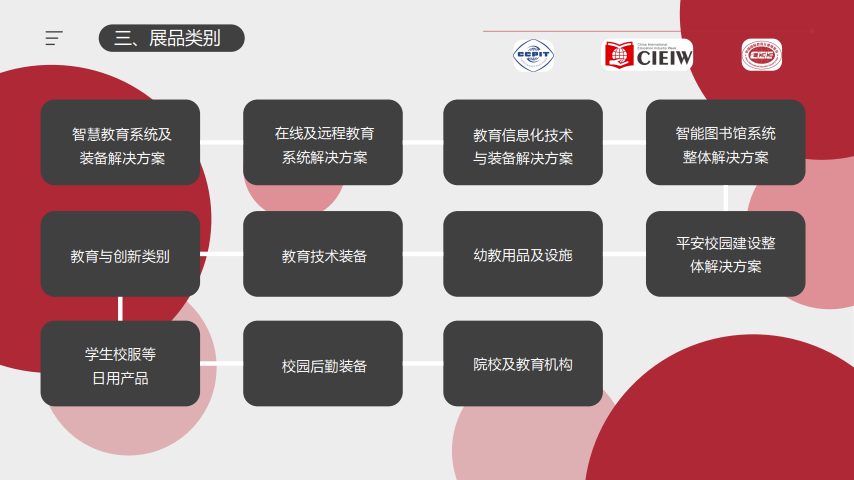 实验室及科研仪器设备与技术、实训/机电类产品、文体用品、医学教育用品、标本、三维扫描仪、智能教具、模型、图书、图书馆设备等教学用品等。