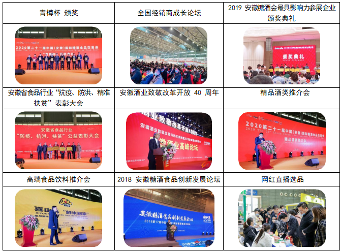 中国(安徽)国际糖酒食品交易会迄今已成功举办21届,是中国酒食行业举办历史较早的 B2B专业展会之一,已发展成为中国酒食领域最具知名度和权威性的展览会之一,其规模和影响力得到了行业高度认可,荣获“安徽省品牌展会”等多项荣誉称号,目前已通过全球展览业协会 UFI 认证, 累计展出面积超过55万平方米,累计参展企业数达到23500余家,共计组织、吸引专业观众82万余人次,累计成交总额478.6亿元,并成功举办高峰论坛、主题活动等200余场次。其办展规模、影响力均名列国内糖酒食品行业展前列。