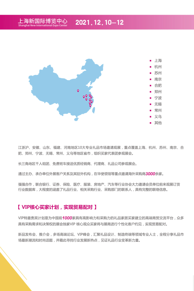 上海--世界的“东方明珠”,作为中国最大的经济、文化、金融中心,也是国际著名的时尚之都,在中国的经济发展中具有极其重要的地位,2010年世博会的成功召开与2013年自由贸易试验区的挂牌成立更使上海的经济、文化及科技又上一个台阶。在上海国际金融中心建设及上海自由贸易试验区联动发展的大环境下,以上海为中心的长三角地区,是中国经济的中心发展区域,这地区的礼品市场蕴含着巨大的商机和不可限量的发展前景。2021上海礼品展