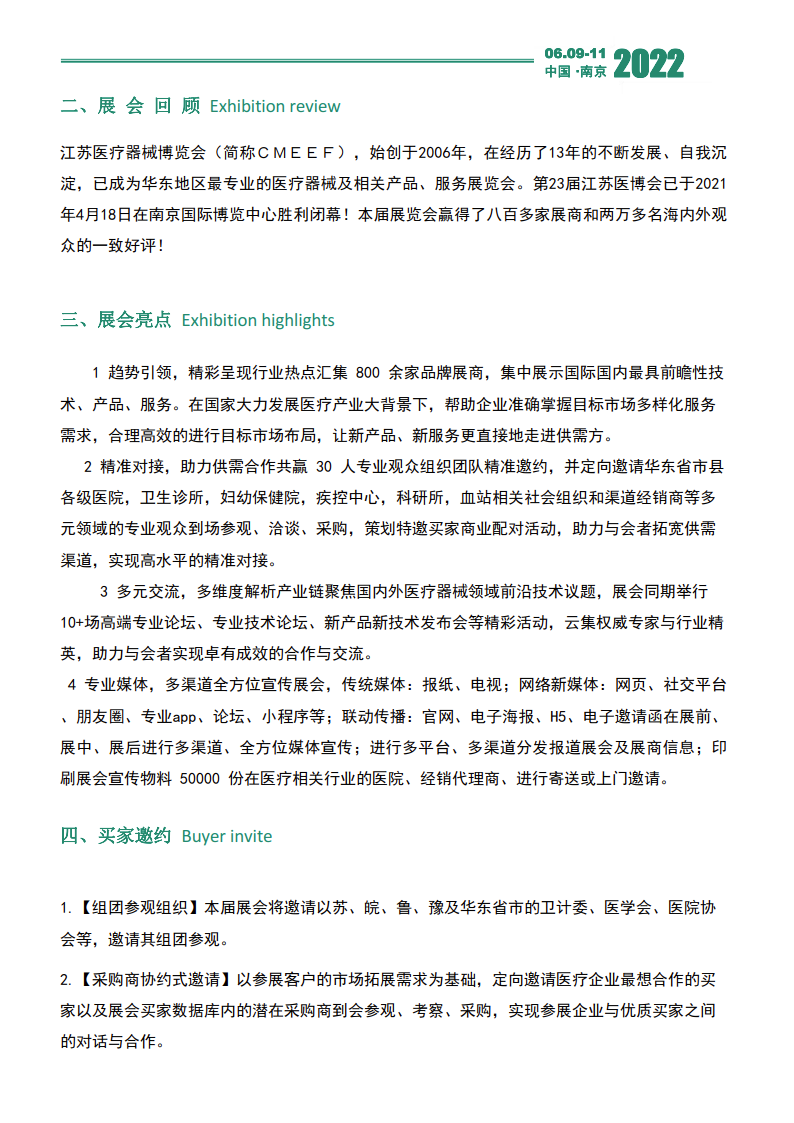 内容摘要: 2022年第24届中国国际医疗器械(江苏)博览会 展会时间:2022.06.09-11 展会地点:南京国际博览中心 展会主题:健康医疗 共建共享 主办单位: 江苏省医疗器械行业协会 南京医院协会 南……