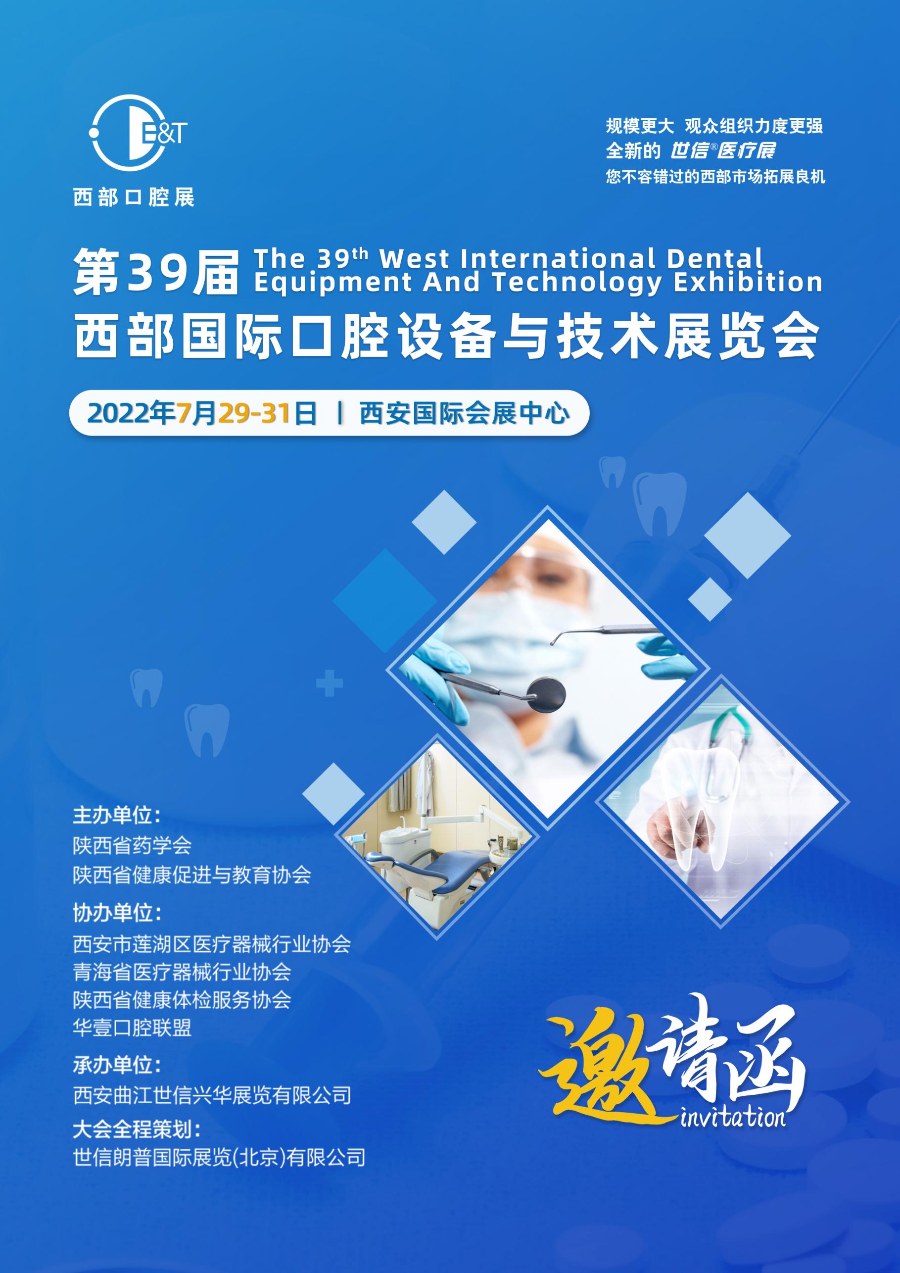 第39届西部口腔展将于2022年7月29-31日在西安国际会展中心(浐灞)隆重举办。本届展会是西部地区口腔展览会中高专业性、高技术水平的口腔展。热忱欢迎广大口腔医学器械及技术相关企业报名参展!
