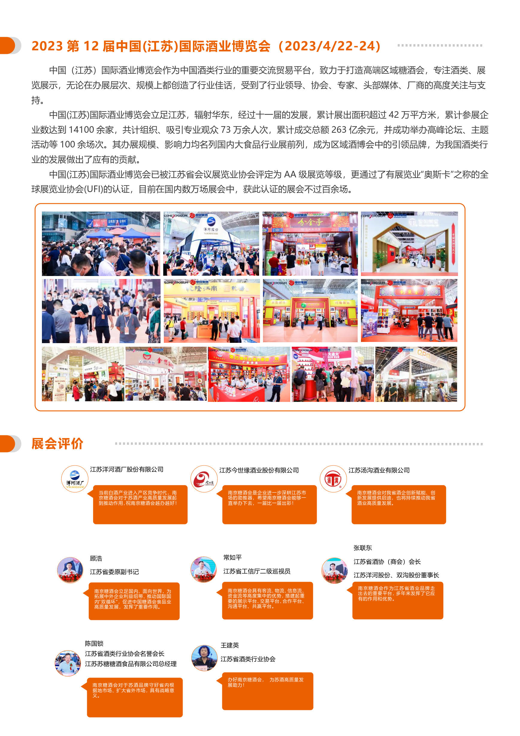 内容摘要: 2023第12届中国(江苏)国际酒业博览会 2023 The 12th China (Jiangsu) International Wine Expo 2023/4/22-24 南京国际展览中心(玄武湖) 展览面积 50000m 2 邀约展商 1800+ 组织观众 80000+ 中国(江苏)国际酒……