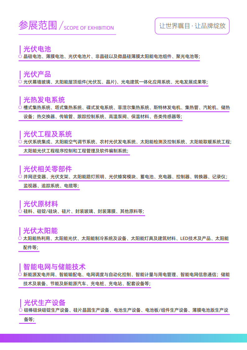 1、全国省(市)发改委、能源局、工信厅(局)建设厅(局)、自然环境厅(局)、教育厅(局)、农业厅(局)、科技厅(局)、商务厅(局)等政府主管部门;2、国内外光伏产品及配件代理商、经销商、采购商;风能产品代理商、经销商、采购商;储能产品代理商、经销商、采购商;光伏电站,风电站开发商、运营商、投资商、工程承包商等;3、各地电力、能源、节能、建筑、农业、畜牧业、制造业、工商业等政府主管部门负责人;4、房地产、建筑设计院等投资、建设单位;医院、院校、养老机构、酒店、纺织、印染、食品、化工等企事业单位;5、国内外有关行业组织专家、学者、媒体。