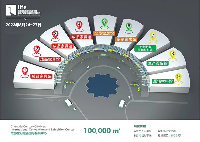 2023年2月17日至20日,2023成都国际家居生活展览会在成都世纪城新国际会展中心成功举办,是2023年西部地区首场万人专业展览会。设有成品家具、全屋家居、定制家居、定制配套、生产设备、原辅材料等主题展馆,涵盖两厅、套房、软体、全屋、定制、软装饰品、办公家具、机械设备、原辅材料等上下游大家居产品,全链展示展销。打造了推动产业高质量发展的强大驱动力,为构建家居展贸销一体化平台注入了新动力。
