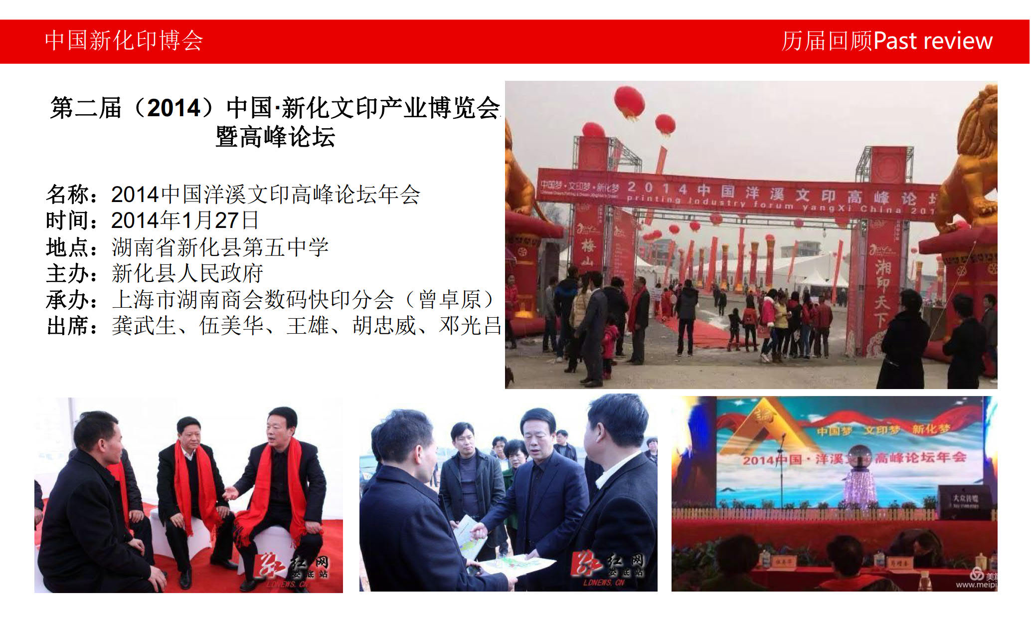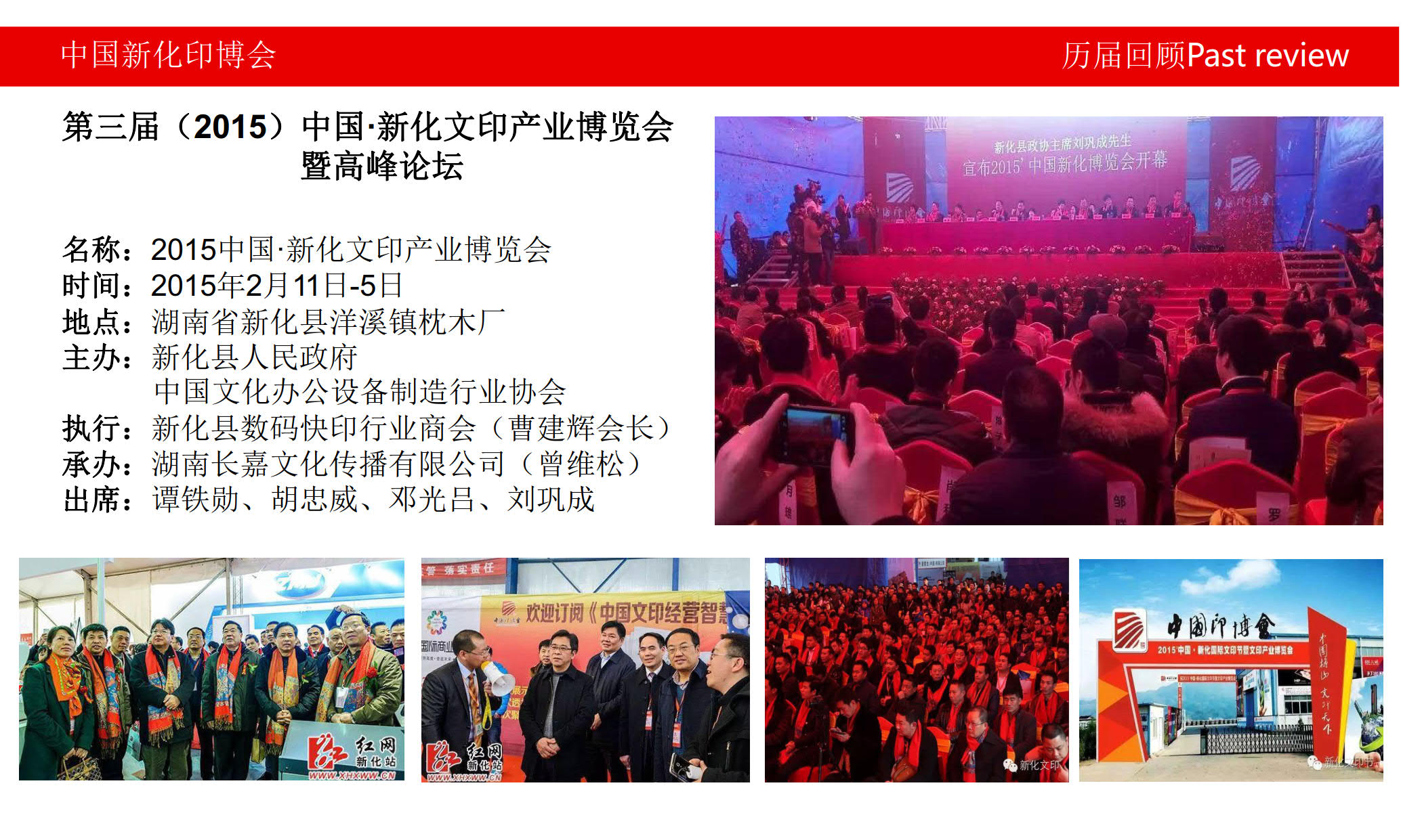 内容摘要: 展会名称:中国·新化文印产业博览会 展会届时:每年两届(夏季展、冬季展) 展会时间:夏季展2023年7月8日、冬季展2024年2月2日 展会地点:湖南省新化县高铁新城文印会展中心 展会……