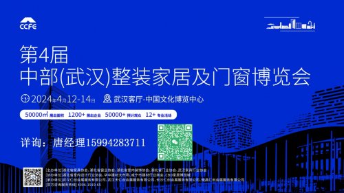 2023第三届中部(武汉)整装定制及门窗博览会于2023年5月16-18日在武汉客厅(中国文化博览中心)盛大举行。
