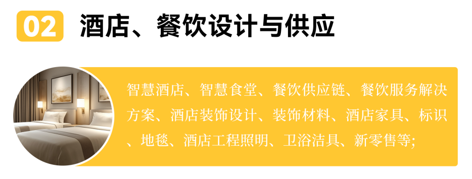 规划展出面积30000㎡+,预计吸引800+ 参展企业、32000+ 专业观众,全面展示酒店用品、餐饮设备、智慧解决方案及供应链资源。