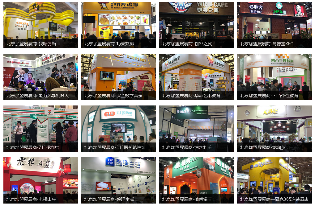 东来顺、便宜坊、黄记煌、权金城、上鱼舫、猫屎咖啡、鸭王集团、雅山国际餐饮、新辣道、无名缘米粉、老城街小面、李二鲜鱼、望京小腰、亮健容天羊蝎子火锅、鲜芋仙、贡茶、赛百味、N多寿司、刘一锅、老诚一锅、雕刻时光、巫山烤鱼、太平洋咖啡、咖啡零点吧、迪浮冰激凌、鲜果时光、第一佳鸡排、老根山庄、ABC教育、山姆大叔、乂学教育、阿卡索外教,松鼠AI、博师教育、红黄蓝、欧美思、小夫子国学、芝麻街英语、罗兰数字音乐、7天连锁酒店、格林豪泰、东呈酒店集团、驿家365连锁酒店、易佰连锁、元洲装饰、嘉禾装饰、浩泽净水、泉汇来、海尚集团、智猫净水、龙润茶业、八马茶业、吴裕泰茶叶、安莱汽车、龟博士、车骑士、尚逸家居、安德森智能家居、乐扣乐扣、歌友汇、多样屋、自然美、宅家健身、京都薇薇、进薇美甲、仙妮蕾德、刘伶醉酒业、美酒汇、百花蜂、森蜂园、燕之屋、迪亚天天、21世纪地产、贝因美、中粮集团、联想集团、百福莱、象王洗衣、罗尼洗衣、福元运通、热血街舞、桔色保健、客如云等知名品牌。