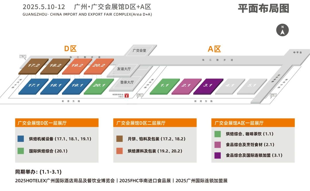 2025年5月10-12日,2025第二十八届中国烘焙展览会将在中国粤港澳大湾区中心活力羊城——中国广州广交会展馆D+A区隆重揭幕!同期与HOTELEX广州国际酒店用品及餐饮业博览会、FHC华南进口食品展以及GIFE广州国际连锁加盟展以创新联动方式组成广州国际烘焙+食饮产业联展(FOOD PLUS GUANGZHOU)。