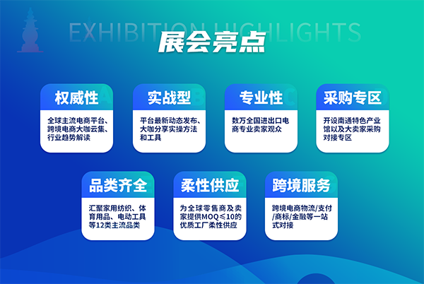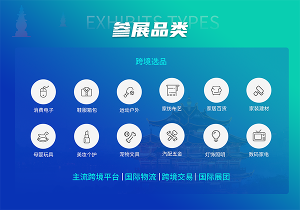 2021年9月23-26日,中国国际跨境电商选品博览会将在杭州国际博览中心召开,旨在为传统外贸、跨境电商、会展经済等相关行业产业和相关企业排忧解進,疏解堵点的初衷以“一展买全国,一站通全球”为目标,全力搭建数字经济新的具有里程碑意义的交易平台,本届展会围绕''数字贸 易,激活创新引领的合作动能"为主题,汇聚国内外行业领袖、业界精英、知名学者等社会各界力量,以全球数字 经济构建创新引擎,加速产业生态聚合,服务共生、共赢的数字世界,以更具国际视野的平台开启中国数字贸易 新航程,推动形成以国内大循环为主体、国内国际双循环相互促进的新发展格局。诚邀全国外贸人、电商人、渠道流通负责人共享行业盛会。