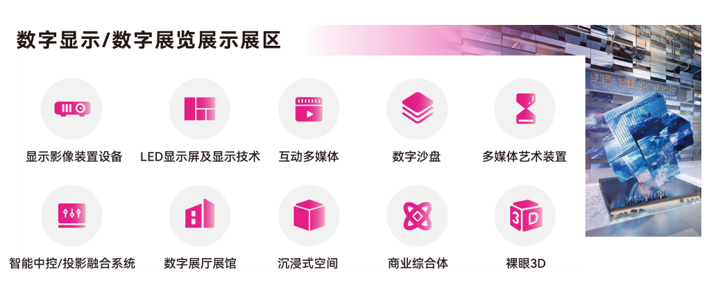 六大展区:打造具有行业高度、专业深度、产业广度,横跨元宇宙、数字展陈/显示、数字文旅、数字艺术数字体育、场景设计、动漫游戏、潮玩等产业上中下游的专业展贸平台!同期第23届世界文旅产业博览会、“第10届世界VR、AR、XR、MR与智能眼镜博览会”、“第7届亚洲数字展览展示博览会”、“第5届亚洲数字文旅演艺产业博览会”、“亚洲数字体育产业博览会”、世界 IP 经济发展交易大会。