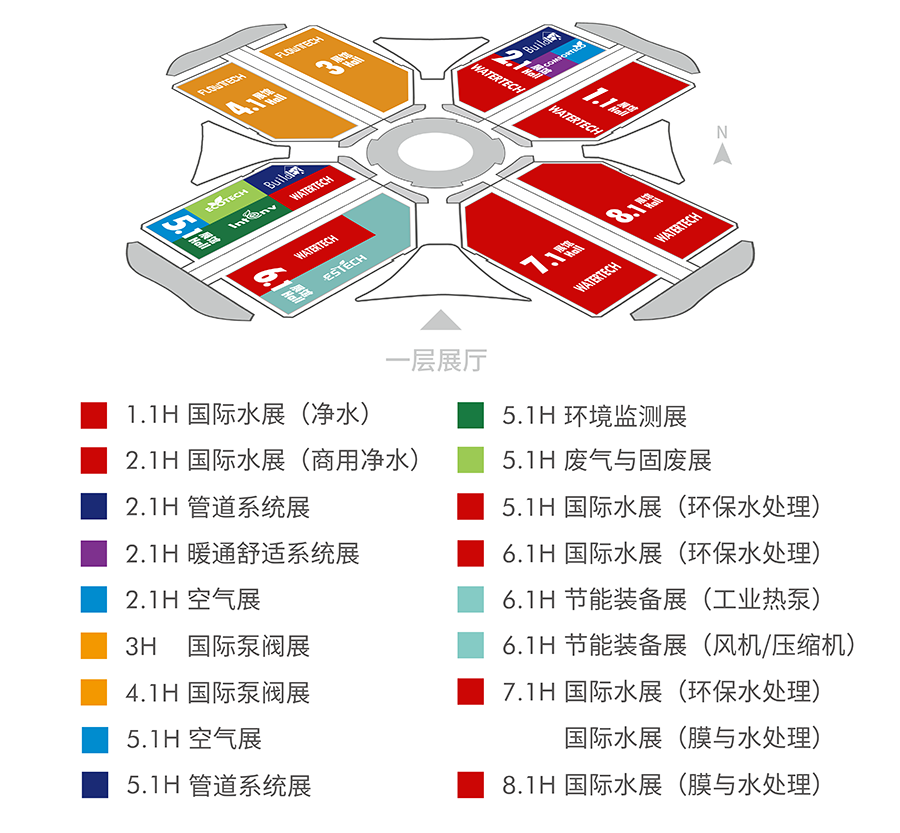 1、本届展会拥有8个馆26万平展示面积。涵盖上海国际水展、上海国际泵阀展、上海国际环保展、上海环境监测及过程控制展、上海节能装备展、上海管道系统展六大主题展会。