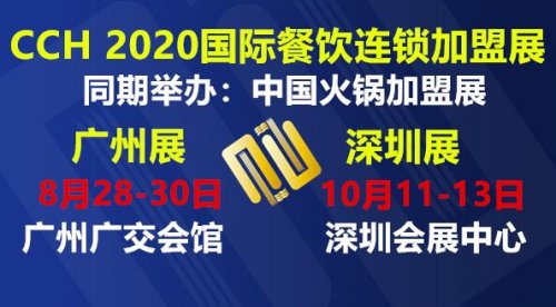 CCH餐饮加盟展览会自2020年开始,CCH展将作出重大战略调整布局,由原一年一届的办展频率增加为一年两届,分别为10月份深圳餐饮加盟展和8月份广州餐饮加盟展。