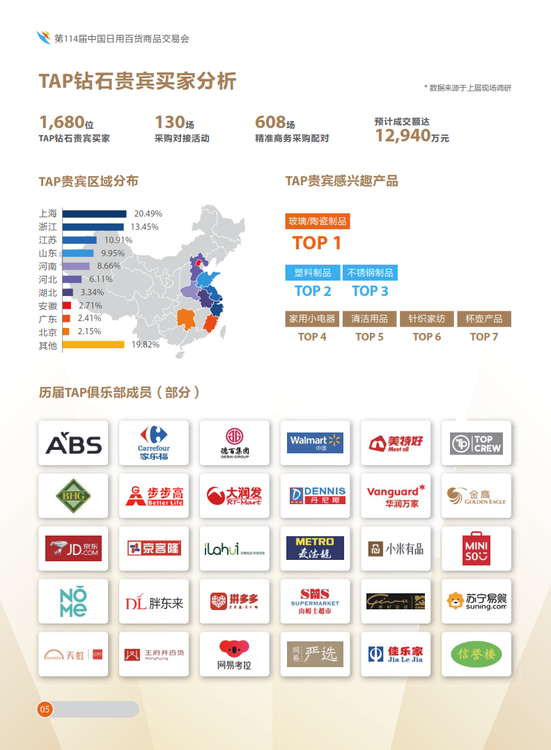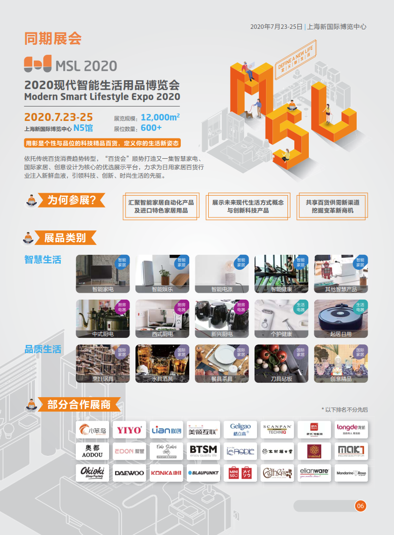 内容摘要: 第114届中国日用百货商品交易会暨中国现代智能生活用品博览会 时间:2020年7月23-25日 地点:上海新国际博览中心 W1-W5/E1-E7/N5 展览规模:180,000平方米 展位数量:8,000+ W1-W5, E1-E7, N5 中国……