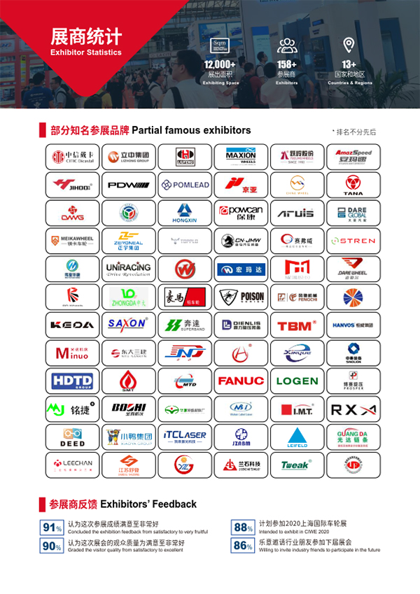 感谢每一位参展商和观众对上海国际车轮展的大力支持!您的参与展出和莅临指导令我们的展品结构日趋完善、专业买家阵容日益壮大,未来上海车轮展将严格把控展会各项工作,提供更完善的展会服务,将展会品质迈向新台阶,期待下一次再相见!