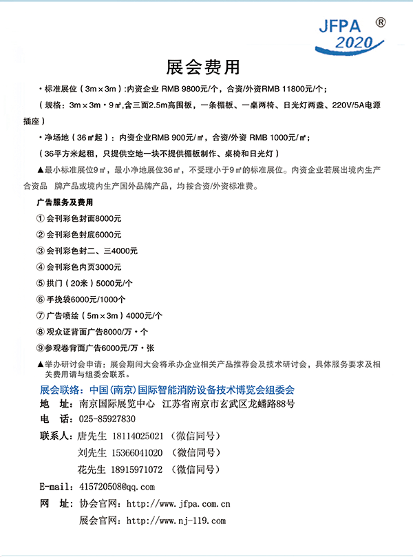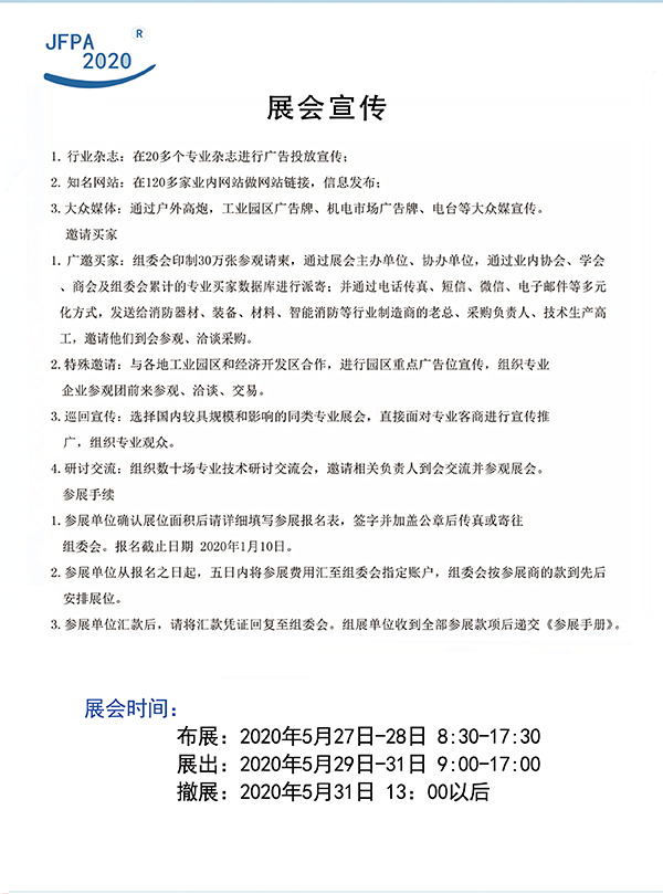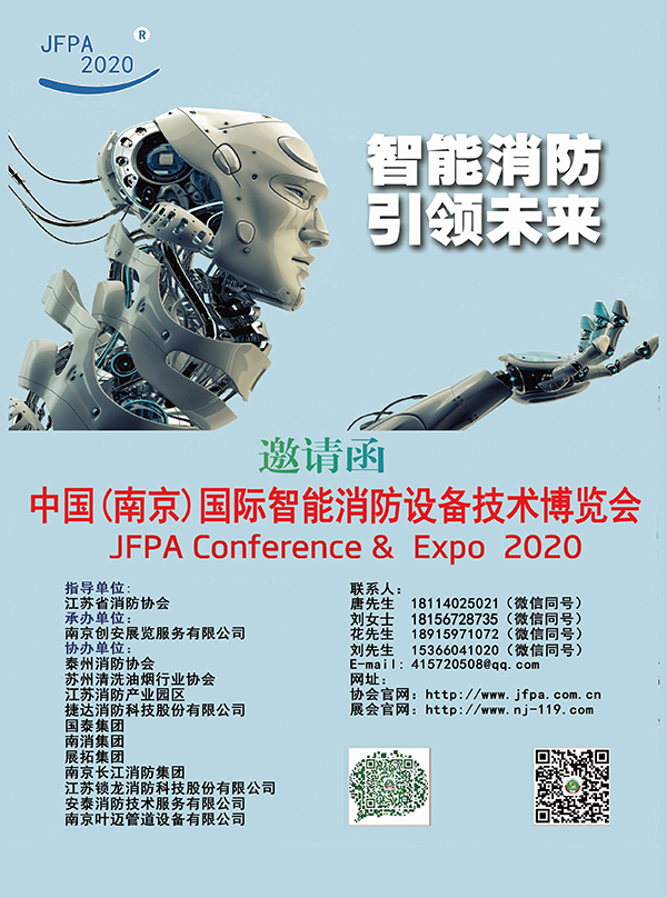 2020中国(南京)国际消防设备技术博览会是一个由消防电子报警系统、自动灭火设备、消防装备、建筑防火产品、消防器材产品、应急救援及安全防护类、消防物联网、消防应急救援车辆等厂家与消防器材经销商、房地产商、消防安装工程公司、石油化工行业、机场、市政建设等单位之间进行展览、贸易、交流的大型专业展览会。