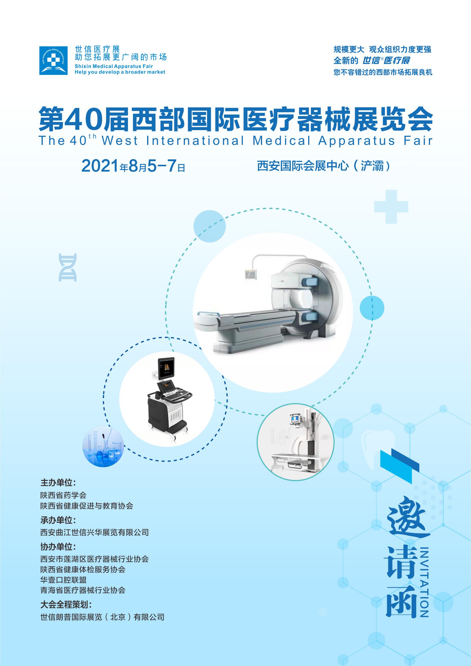 2021年8月5日-7日在西安国际会展中心(浐灞)举办第40届西部国际医疗器械展览会。同期举办第39届西部国际口腔设备与技术展览会。本届展会将在展区规划、宣传推广、论坛活动、观众组织和会场服务等方面进行全面升级,给予新老客户全新参会体验。目前,大会招商已启动,热忱欢迎新老客户踊跃报名参加。组委会继续对边远医院观众提供会期参观免费住宿。