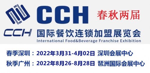 由世界饭店联合会、中国烹饪协会主办的CCH国际连锁加盟展,涵盖餐饮、酒店、咖啡饮品、智慧零售等多版块内容。尤其其中的餐饮连锁项目,是国内餐饮投资领域的专业优选平台。2022深圳餐饮连锁加盟展将于2022年3月31-4月2日在深圳会展中心举办,展览面积将突破60000平方米,参展商将达600家,参观人数将达150000人次。