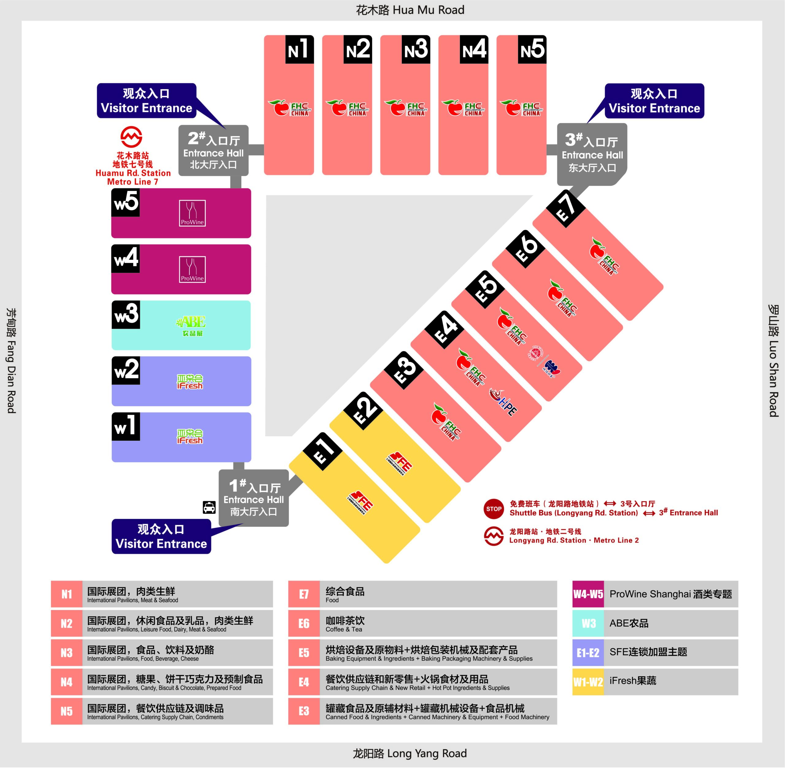 ■ 室内展厅:N1-N5馆、E3-E7馆、W4-W5馆