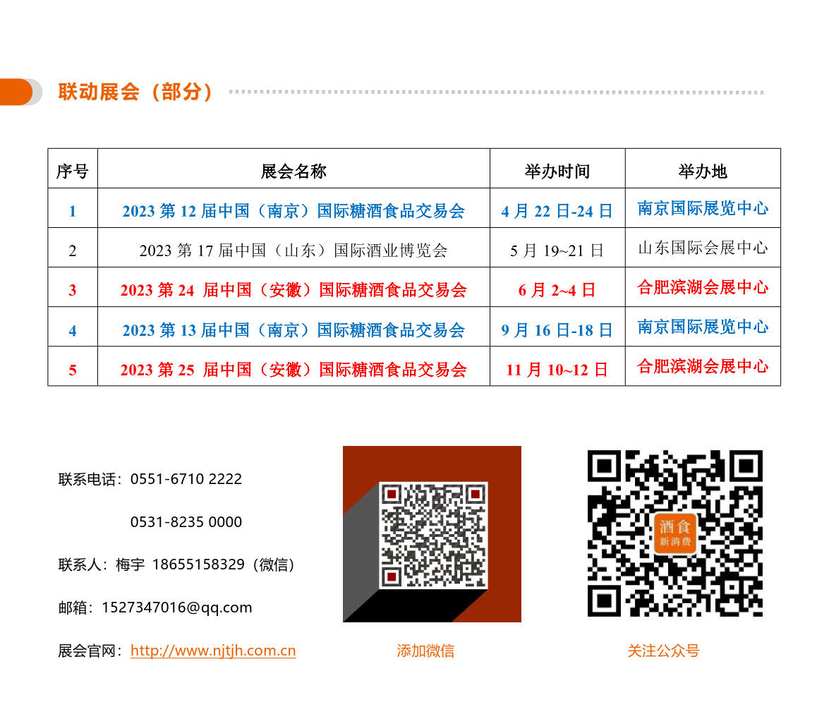 内容摘要: 2023第12届中国(江苏)国际酒业博览会 2023 The 12th China (Jiangsu) International Wine Expo 2023年4月22-24日 南京国际展览中心(玄武湖) 展览面积50000m 2 邀约展商1800+ 组织观众80000+ 指导单位:中国酒……