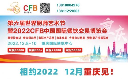 为更好的打造全球餐饮一站式采购交易平台,“第六届世界厨师艺术节暨2022CFB中国国际餐饮交易博览会”将移师“国际消费中心城市”“中国火锅之都、美食之都和餐饮食材标准化生产强省与餐饮食材交易的天然集散地”重庆,于2022年12月8-10日在重庆国际博览中心隆重举办,展出面积36000平米,汇集全球800家餐饮产业链品牌企业的22000多种餐饮产业链优质产品,60余项国际合作项目、20余场同期活动,5000余餐饮行业领袖及餐饮专业观众近50000万余人, 150余家主流媒体+餐饮行业媒体聚焦此次盛会。
