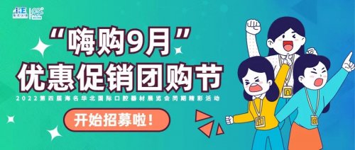9月22-24日华北口腔展开展期间,组委会将在现场设置“嗨购9月”优惠促销团购节活动现场,参与企业展位布置将会有活动显著标识,并可获得现场采访1次及媒体宣传报道机会,拥有精准客户采购团面对面交流、供需对接洽谈机会。