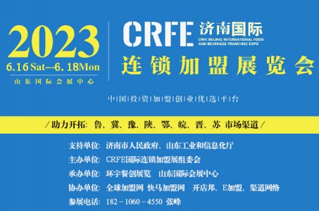 CRFE山东(济南)国际连锁加盟展览会在连锁加盟行业内享有一定的影响力,多年来赢得良好的口碑。为中国连锁业打造一个兼具专业性、实效性和不凡性价比的“招商+展示”的线下平台,助力连锁品牌的快速发展!。为继续促进创业带动就业、创业致富,搭建项目发布、信息交流、加盟推介的高端交流合作平台。 “2023山东(济南)国际连锁加盟展览会” 将于2023年6月16日-18日在山东国际会展中心举办,将继续对促进创业和带动就业发挥积极作用。 CRFE济南加盟展影响力辐射全国,现已是连锁会展行业风向标,是广大企业品牌连锁招商加盟首选的展览平台!