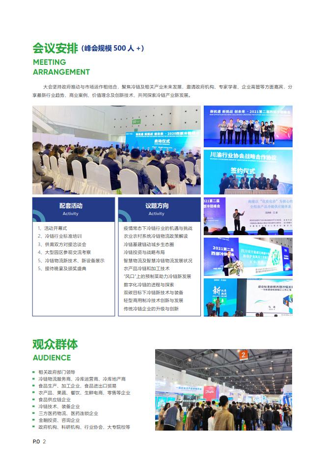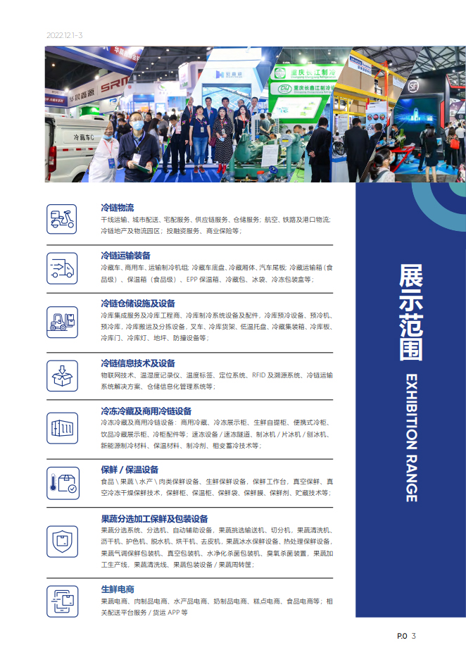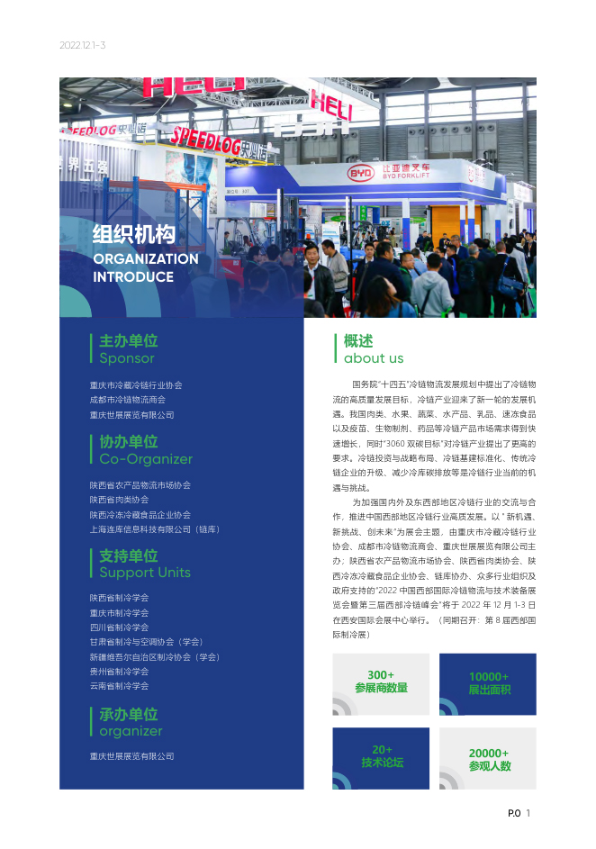 为加强国内外及东西部地区冷链行业的交流与合作,推进中国西部地区冷链行业高质发展。以"新机遇、新挑战、创未来”为展会主题,由重庆市冷藏冷链行业协会、成都市冷链物流商会、重庆世展展览有限公司主办;陕西省农产品物流市场协会、陕西省肉类协会、陕西冷冻冷藏食品企业协会、链库协办、众多行业组织及政府支持的“2022中国西部国际冷链物流与技术装备展览会暨第三届西部冷链峰会”将于2022年12月1-3日在西安国际会展中心举行。(同期召开:第8届西部国际制冷展)