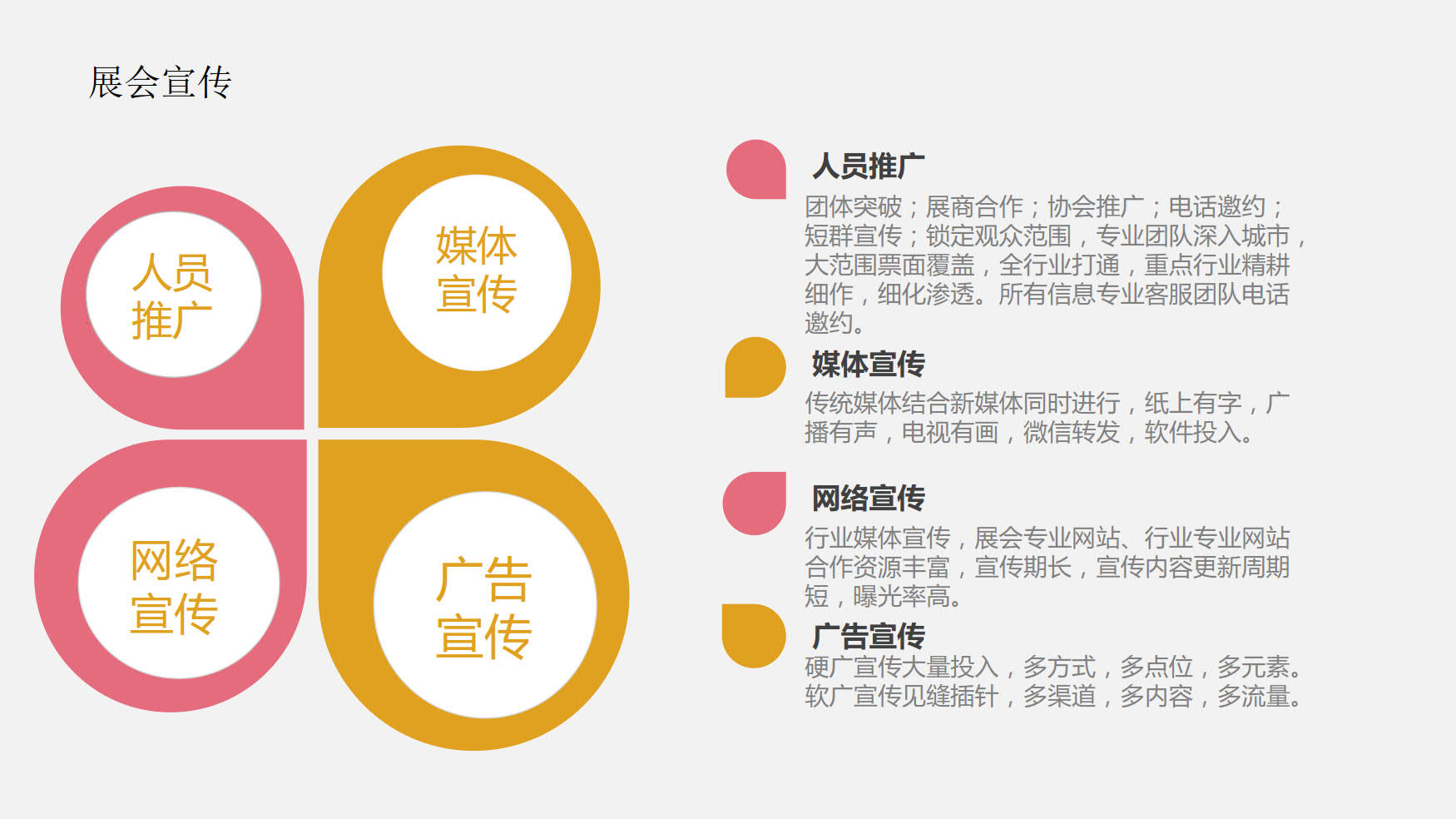 • 深入东四省的专业市场,进行专业市场调研,开 拓买家和经销商资源,为展会进行经销商和高端 买家采购团重点邀约;