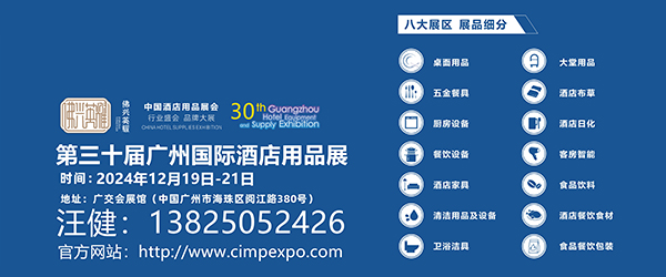 2024第三十届广州酒店用品展览会是由广东佛兴英耀展览服务有限公司主办,于 2024年12月 19-21日在中国进出口商品交易会琶洲展馆(广交会展馆)举行。本届展览会预计展览面积 30 多万平方米,参展企业 4000 多家,展品范围包括陶瓷餐具、玻璃器皿、厨房设备、清洁设备、酒店家具、酒店装饰、智慧酒店、客房用品、食品饮料、食材等酒店用品门类的上下游全产业链,本届展览会是国内外酒店用品行业的一个盛会。