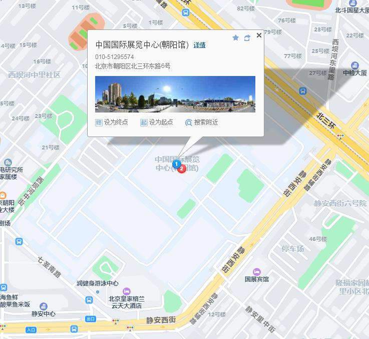 1.导航设置:输入“中国国际展览中心(朝阳馆)1号门”,或直接搜“北三环东路6号”。