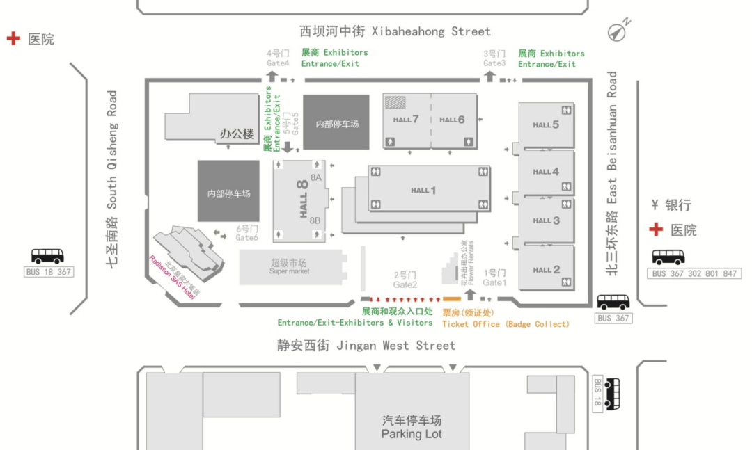 市内出行 方案A:地铁(最稳妥,避拥堵) •首选(12/17号线):西坝河站 D口出 → 沿北三环东路辅路向东步行约600米(8分钟)→ 到达展馆1号门。 •备选1(10号线):三元桥站 D口出 → 沿北三环东路辅路向西步行约1公里(13分钟)→ 展馆正门。 •备选2(13号线):柳芳站 B口出 → 沿左家庄东街向南步行约800米(10分钟)→ 展馆东北门。 方案B:公交(直达,少走路) •到站选择:国际展览中心站(步行3分钟)或 静安庄站(步行5-8分钟)。 •常用线路:国际展览中心站乘18、130、367、966路;静安庄站乘300、302、641、847路。 •下车动作:到站后跟随人流或指示牌,向北三环东路6号方向步行,优先从1号门入 自驾/打车