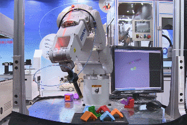 安川机器人MH24配备佳能3D视觉系统,能使机器人准确的抓取放在料框内杂乱的工件,并且准确的摆放。能广泛应用与汽车零部件,家电等行业的无序分拣作业。