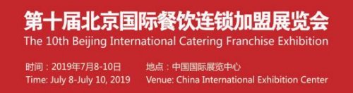 2019北京国际餐饮连锁加盟展览会,将于2019年7月8-10日在中国国际展览中心(静安庄馆)继续举办。预计将迎来全球20多个国家和地区的500家企业参展,届时展会总面积达35000平方米,预计专业观众突破60000名,期待您的继续支持!